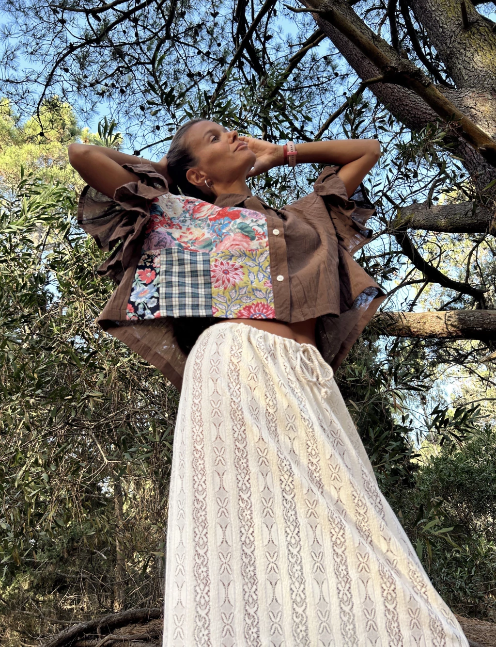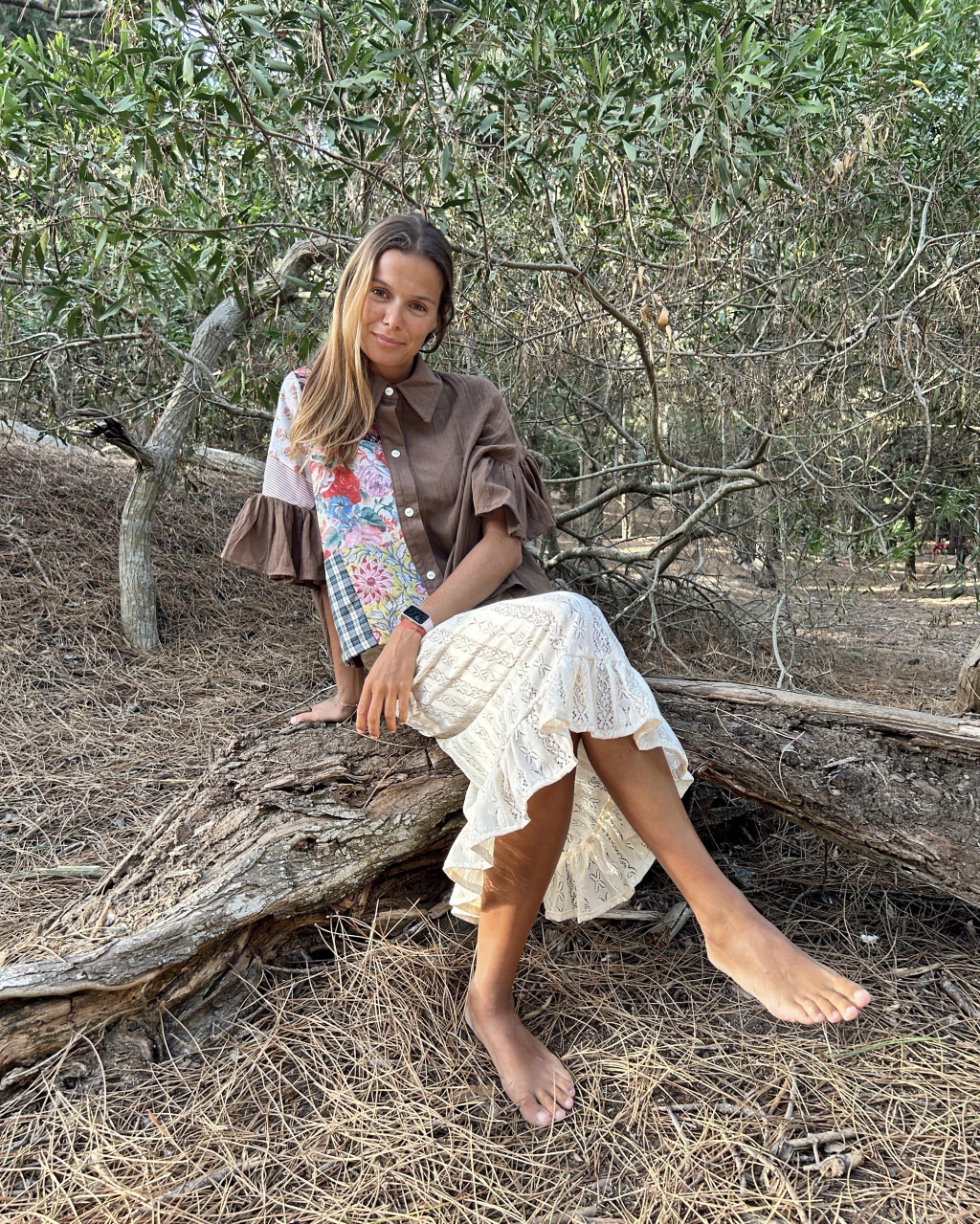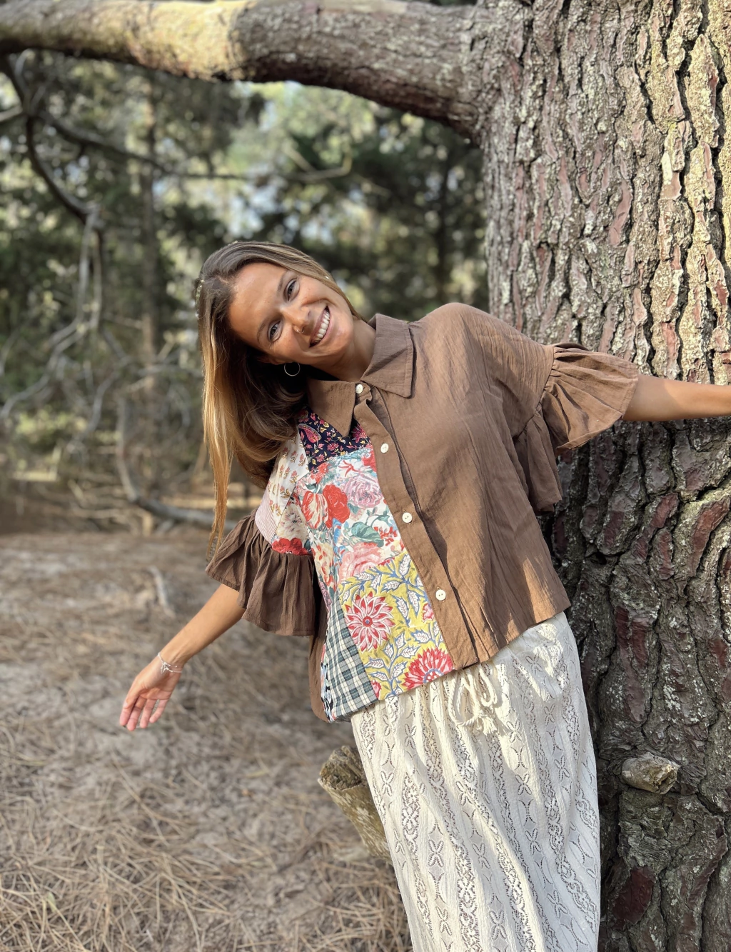Camisita confeccionada en gasa de algodón, algodones block print y telas varias de nuestra marca en técnica patchwork, tiene un vuelo en mangas y espalda que son divinos y el corte es super comodo y tiene amplitud