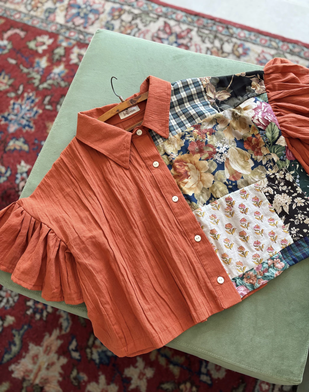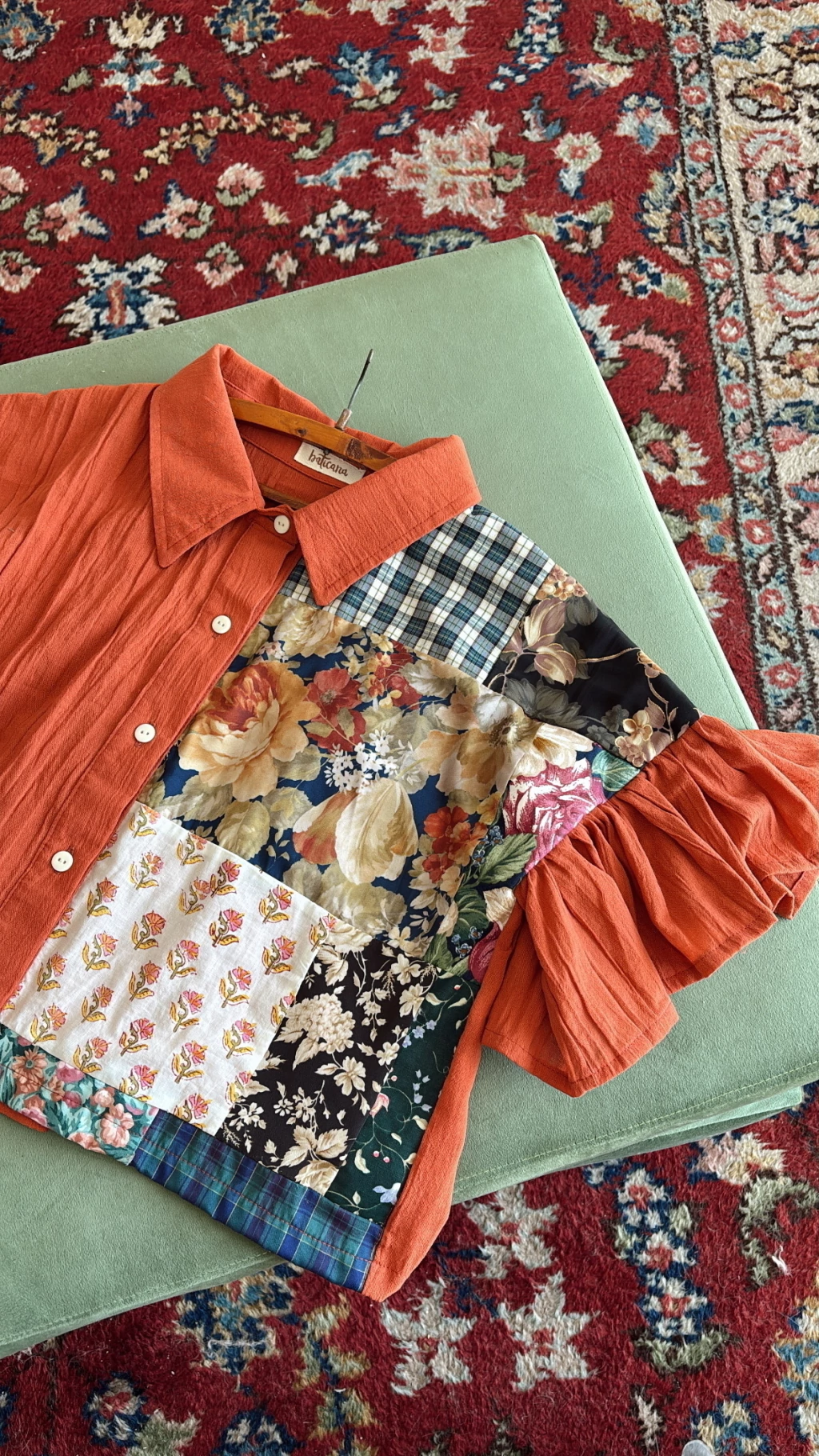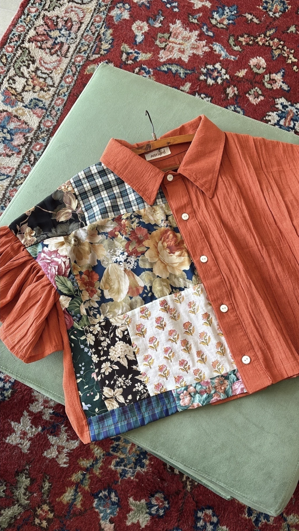 Camisita confeccionada en gasa de algodón, algodones block print y telas varias de nuestra marca en técnica patchwork, tiene un vuelo en mangas y espalda que son divinos y el corte es super comodo y tiene amplitud