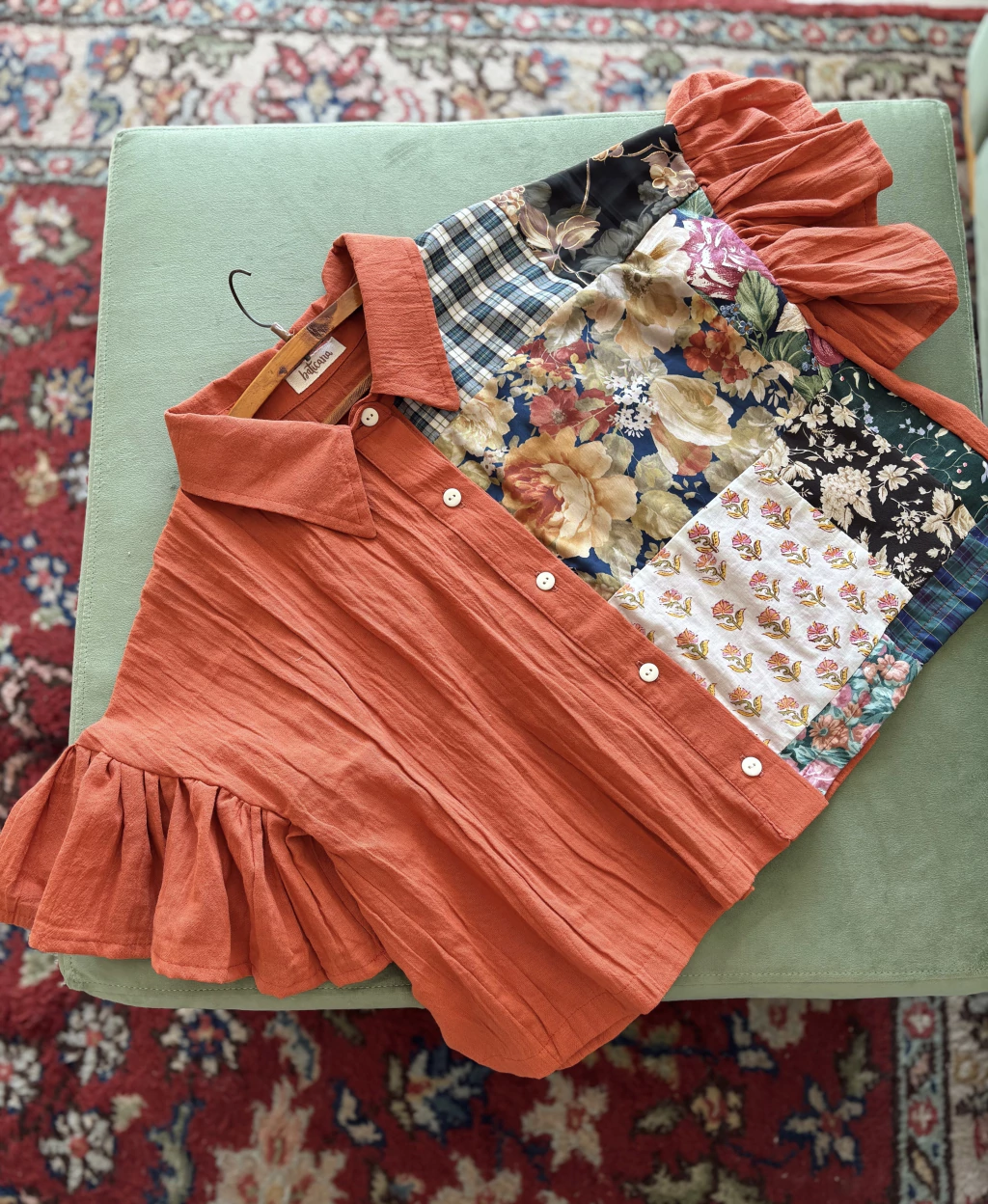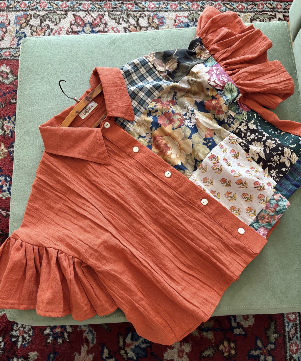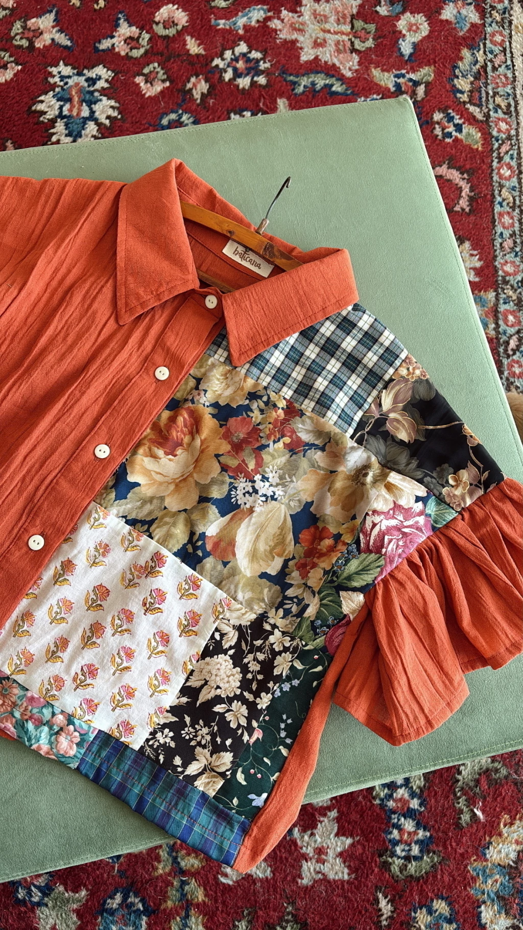 Camisita confeccionada en gasa de algodón, algodones block print y telas varias de nuestra marca en técnica patchwork, tiene un vuelo en mangas y espalda que son divinos y el corte es super comodo y tiene amplitud