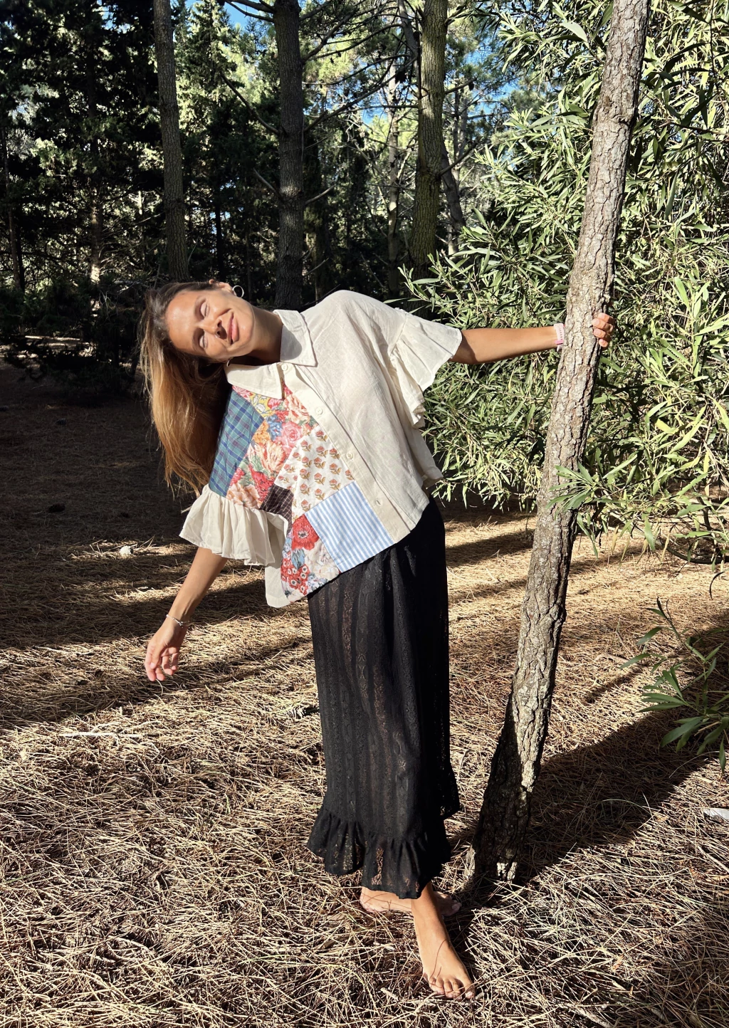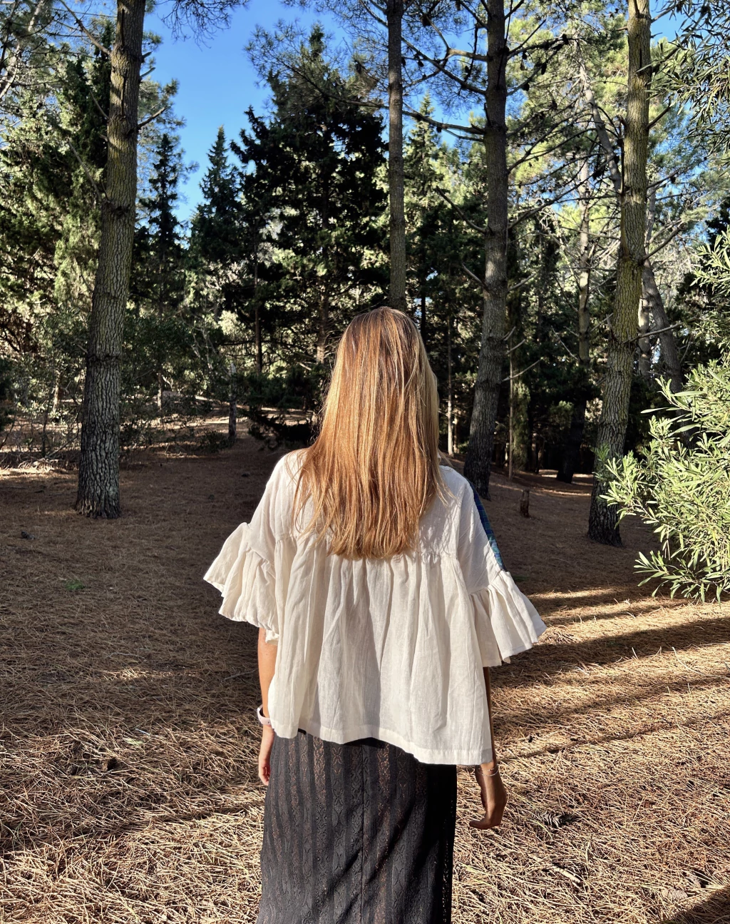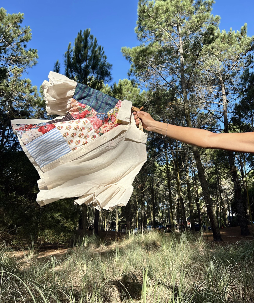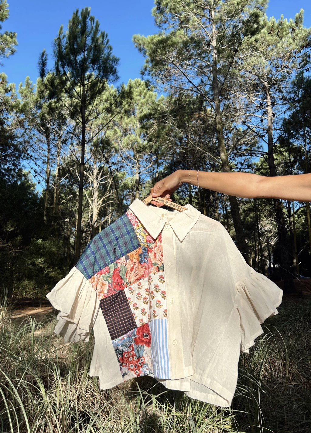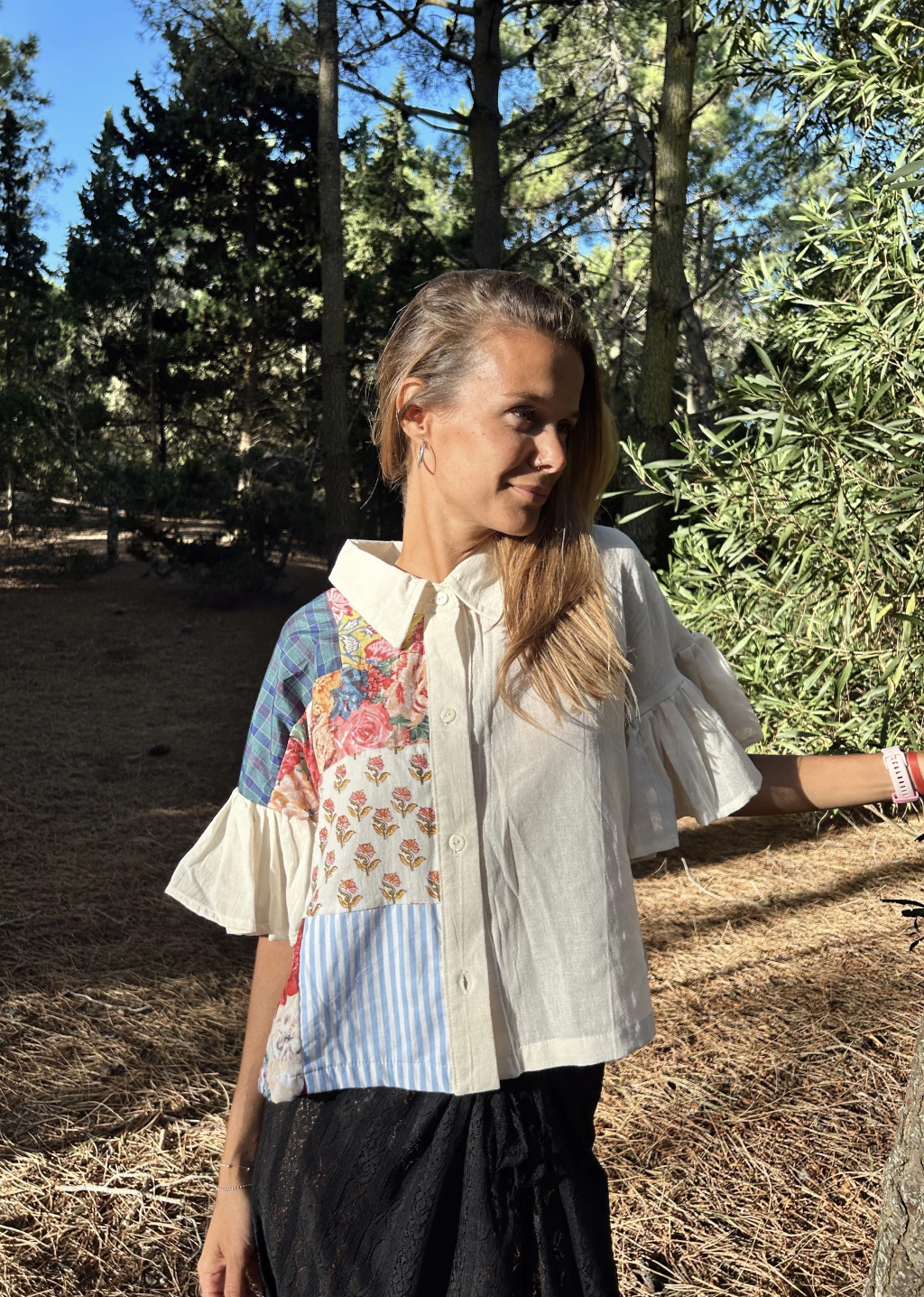 Camisita confeccionada en gasa de algodón, algodones block print y telas varias de nuestra marca en técnica patchwork, tiene un vuelo en mangas y espalda que son divinos y el corte es super comodo y tiene amplitud