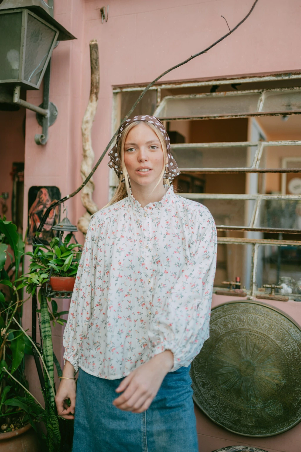 Confeccionada en poplin rayón con lurex en dorado, con mangas híper amplias y elástico de 2 cm en los puños, pero eso no es nada, los detalles más hermosos son su cuello con volados y sus botoncitos especialmente seleccionados para esta camisa que son los típicos que una abuela tiene en su costurero de años