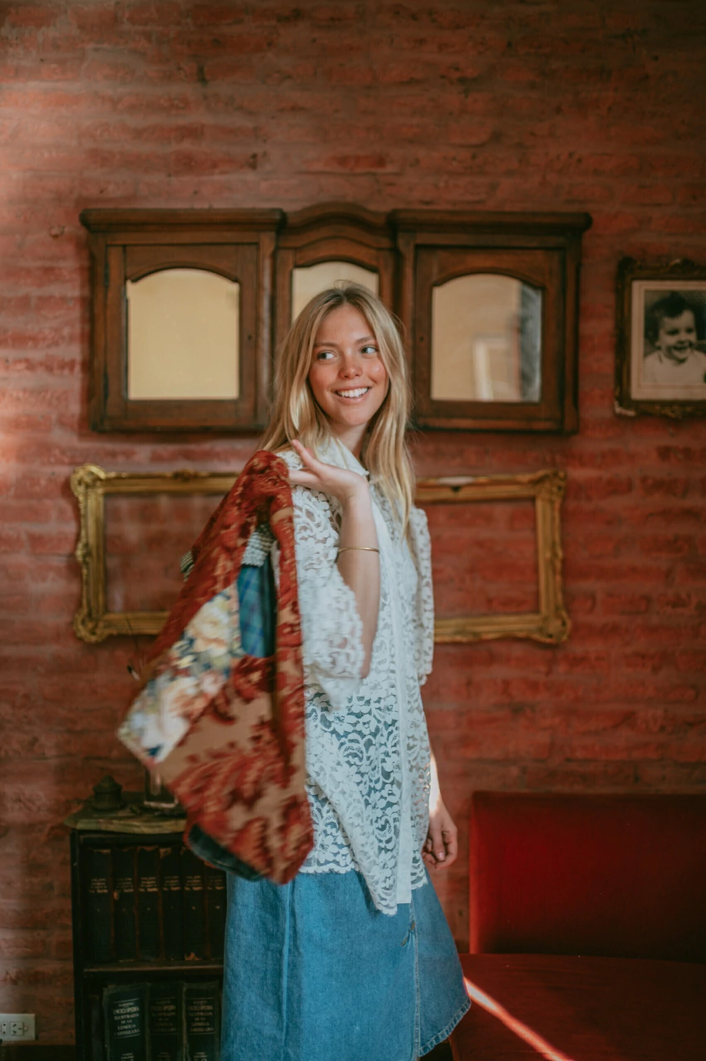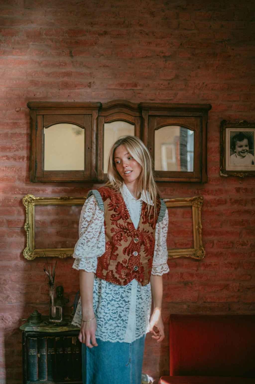 Estos chalequitos especiales están confeccionados en diferentes combinaciones de telas tapiceras antiguas. De un lado más cargado y del otro un toque más tranqui. Tiene un corte de chaleco sastrero pero como siempre acomodando la molderia a nuestro gusto y comodidad.