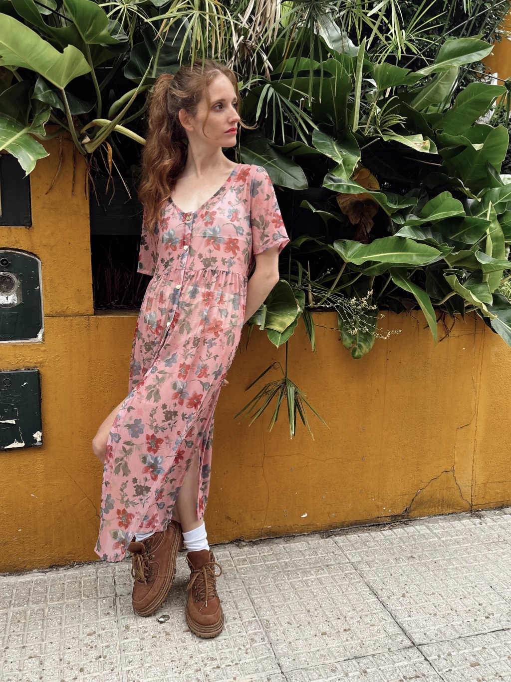 Vestido confeccionado en tela de punto microtul con spandex, recreamos un modelo de vestido estilo vintage con estampas propias y los botones que le dan un detalle súper hermoso y único!