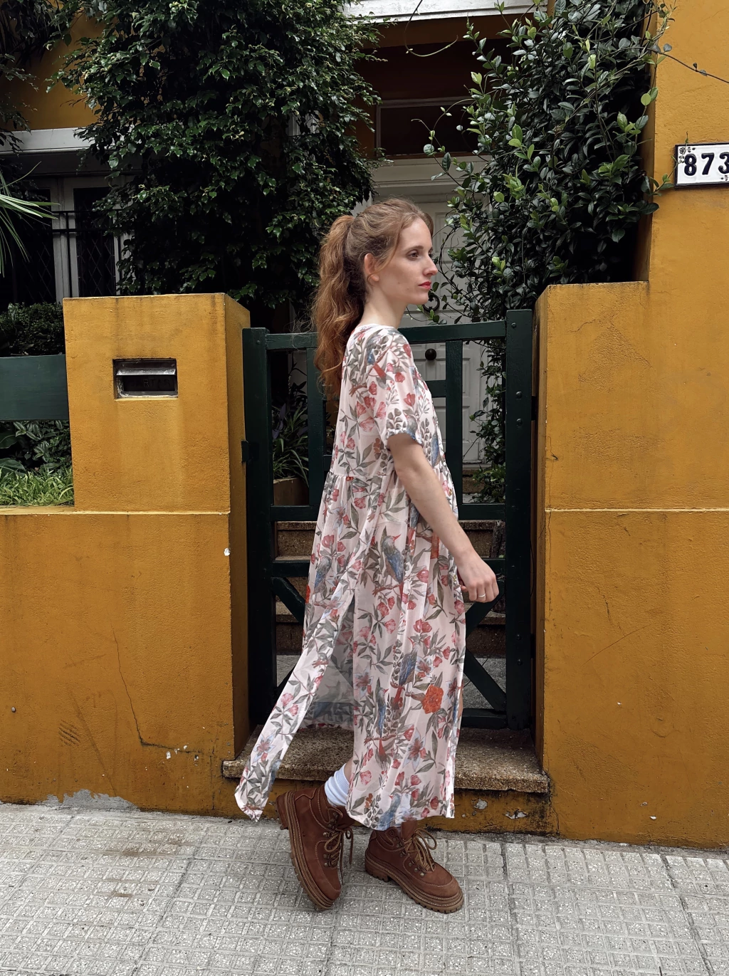 Vestido confeccionado en tela de punto microtul con spandex, recreamos un modelo de vestido estilo vintage con estampas propias y los botones que le dan un detalle súper hermoso y único!